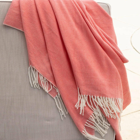 The Alashan Adirondack Herringbone Throw adds a dash of color and is supremely well priced. The 50/50 cotton/acrylic blend is lightweight enough to be used all year long. The Alashan Adirondack Herringbone throw is available in twenty-one shades, Baltic Blue, Shadow, Bisque,Carolina Blue, Palmetto, Beach Grass, Pewter, Aegean, Regatta Blue, Wisteria, Coral Cay, Onyx, Rock Port, Toffee, Smokey Plum, Brandywine, Carmine, Coral Island, Halo, Tradewind, Santorini, and Spring Lake.