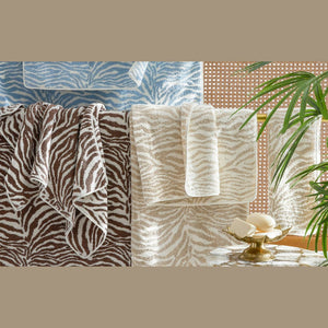 A striking combination of artistry and function, the Matouk Schumacher Regine Bath style transforms one of Schumacher’s most vibrant patterns into a decorative jacquard weave. Rendered in a refined linen-cotton blend with a notably soft hand, it offers exceptional quality and a stylized elegance.