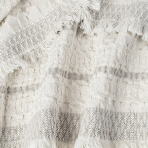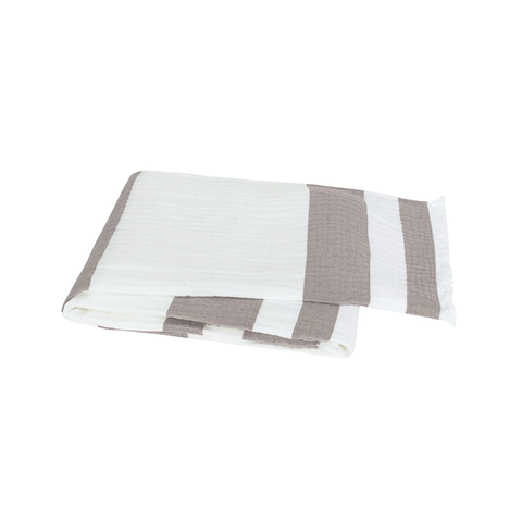 Crafted from 100% premium cotton, the Lisbon throw is designed for those who appreciate the finer details. Its signature subtle waffle texture provides a tactile depth that invites you to touch, while the lightweight weave offers year-round versatility. The sophisticated charcoal stripes are framed by a delicate, eyelash-fringe edge, adding a layer of artisanal charm to your bedding or sofa.