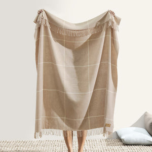 Lands Downunder Windowpane Cashmere Throw - Sand