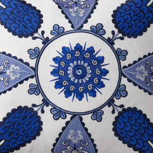 Inspired by Egyptian and Iranian tiles, the elegant floral motif of The Met x Ann Gish Iznik Decorative Pillow in a classic white and indigo color palette translates beautifully to textile for the Met x Ann Gish collaboration.