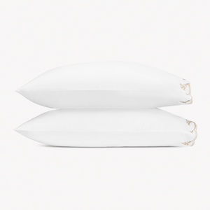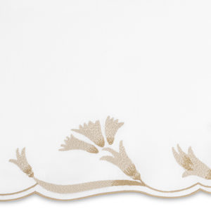 Matouk's Marcella bedding has delicate scalloped florals on luminous sateen that offer depth and softness to a classic design. Marcella’s exquisite embroidery combines timeless elegance with luxurious comfort, creating a graceful centerpiece for any bedroom.