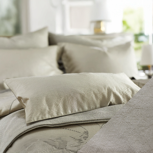Shutter’s understated linear pattern adds visual interest while maintaining a clean, modern aesthetic. The luminous finish of silk pairs beautifully with the strength and softness of Egyptian cotton, delivering a bedding collection that feels as elegant as it looks.