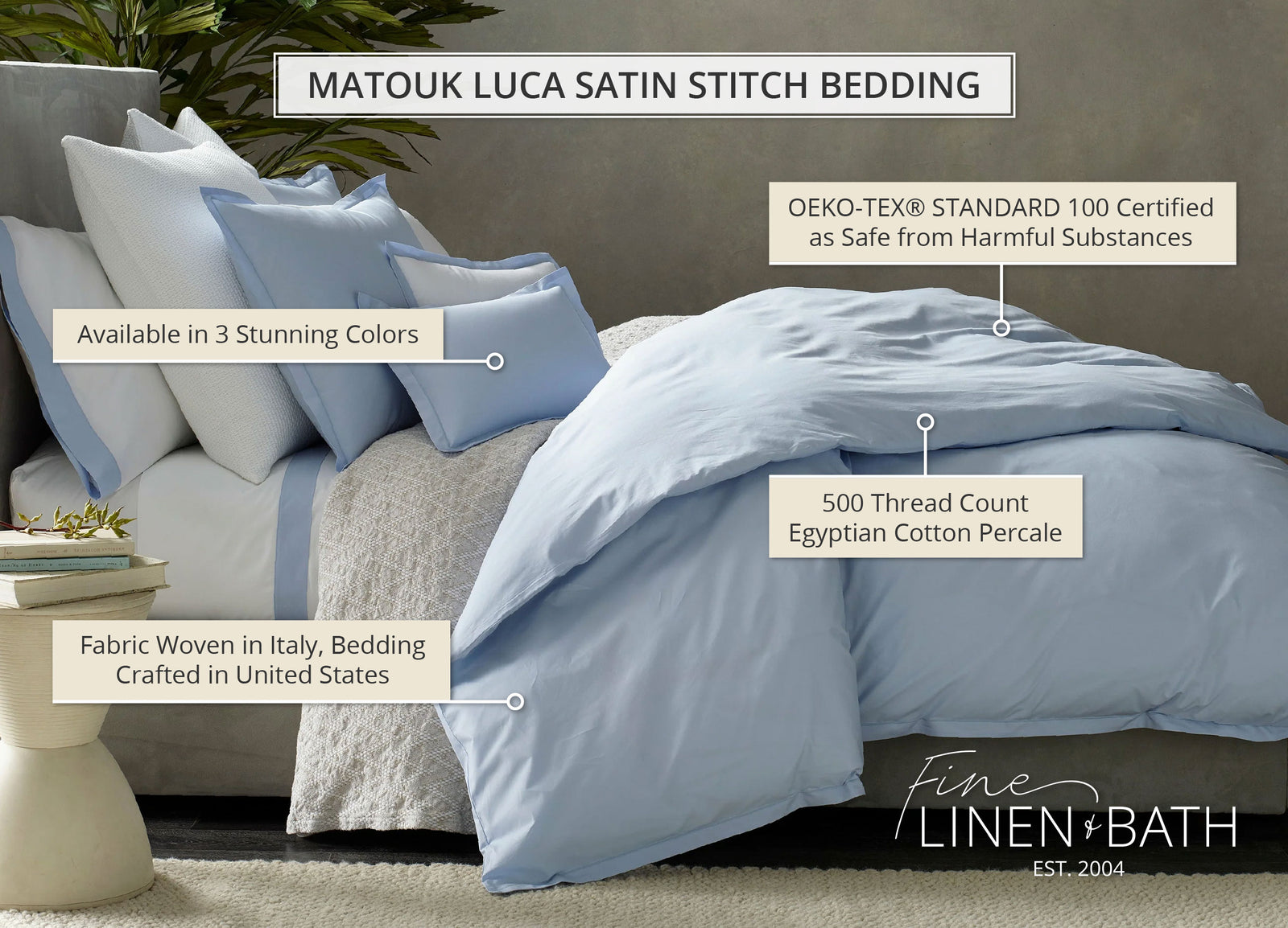 • Weave: The percale weave of Matouk Luca Satin Stitch offers a cool soft touch and a crisp feel similar to the finest luxury hotel bedding.