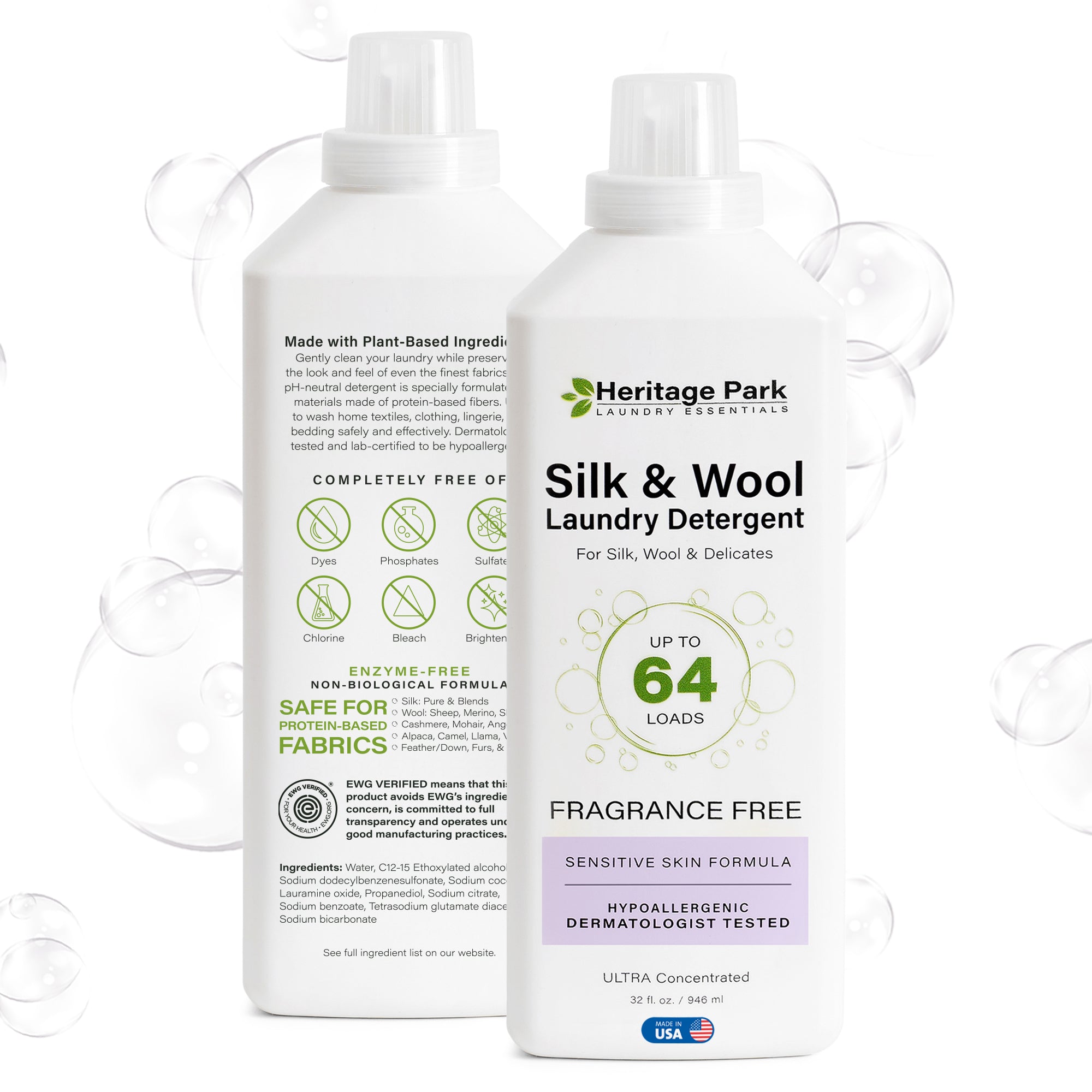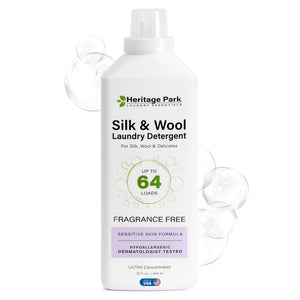 Heritage Park has created the ultimate luxury laundry detergent to gently, yet effectively, clean without causing damage to costly fabrics. This specialized laundry soap contains powerful cleaning agents formulated just for silk, wool, and other fabric clothing and home linens made of natural fibers. With its unique cleaning power, Heritage Park's fine laundry detergent for silk and wool will preserve your laundered luxuries for years to come.