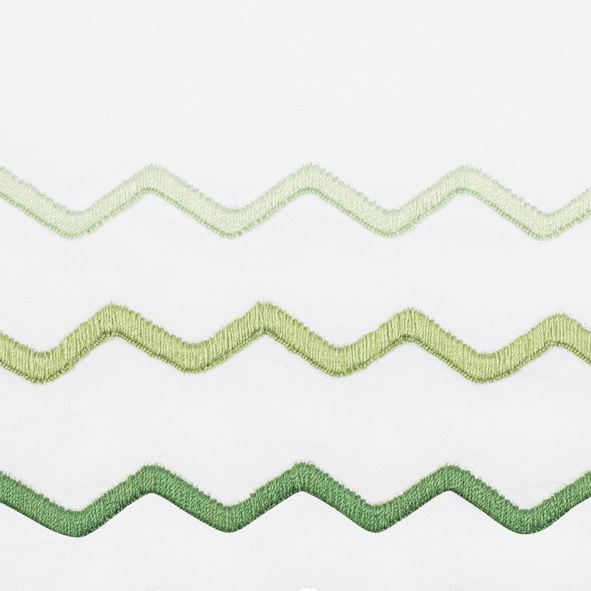 • Duvet Covers, Flat Sheets, and Pillowcases: Feature three elegant rows of embroidered zigzag detailing