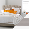 “The sheer color choice alone makes Nocturne one of our most popular and desired styles. We also love the lustrous weight and heavier feel of sateen, which is ideal for styling an opulent bed. It is a heavier weave with a smoother finish that drapes beautifully and is less prone to wrinkling. We also appreciate the classic tape detail, which is a signature touch from Matouk.”-- Kassi, Design Team