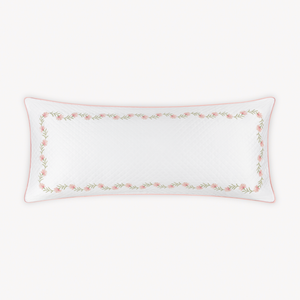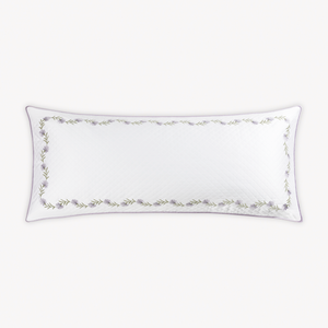 Embroidered with a trailing flower motif, the Matouk Daphne Matelasse Lumbar Pillow Cover adds delicate charm to their Petra diamond matelasse, creating a collection staple. This style is designed to coordinate with the coveted Daphne sheeting collection. It has a soft hand-feel, a light sheen and fluid drape.