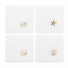 Sferra's Beachcomber cocktail napkins feature four delightful seashell embroideries in golden/beige hues, reminiscent of those collected in childhood ocean treasure hunts. Four naturalistic patterns get the conversation started, ensuring your next get-together will be a day at the beach. Embroidered on pure white, hemstitched linen.