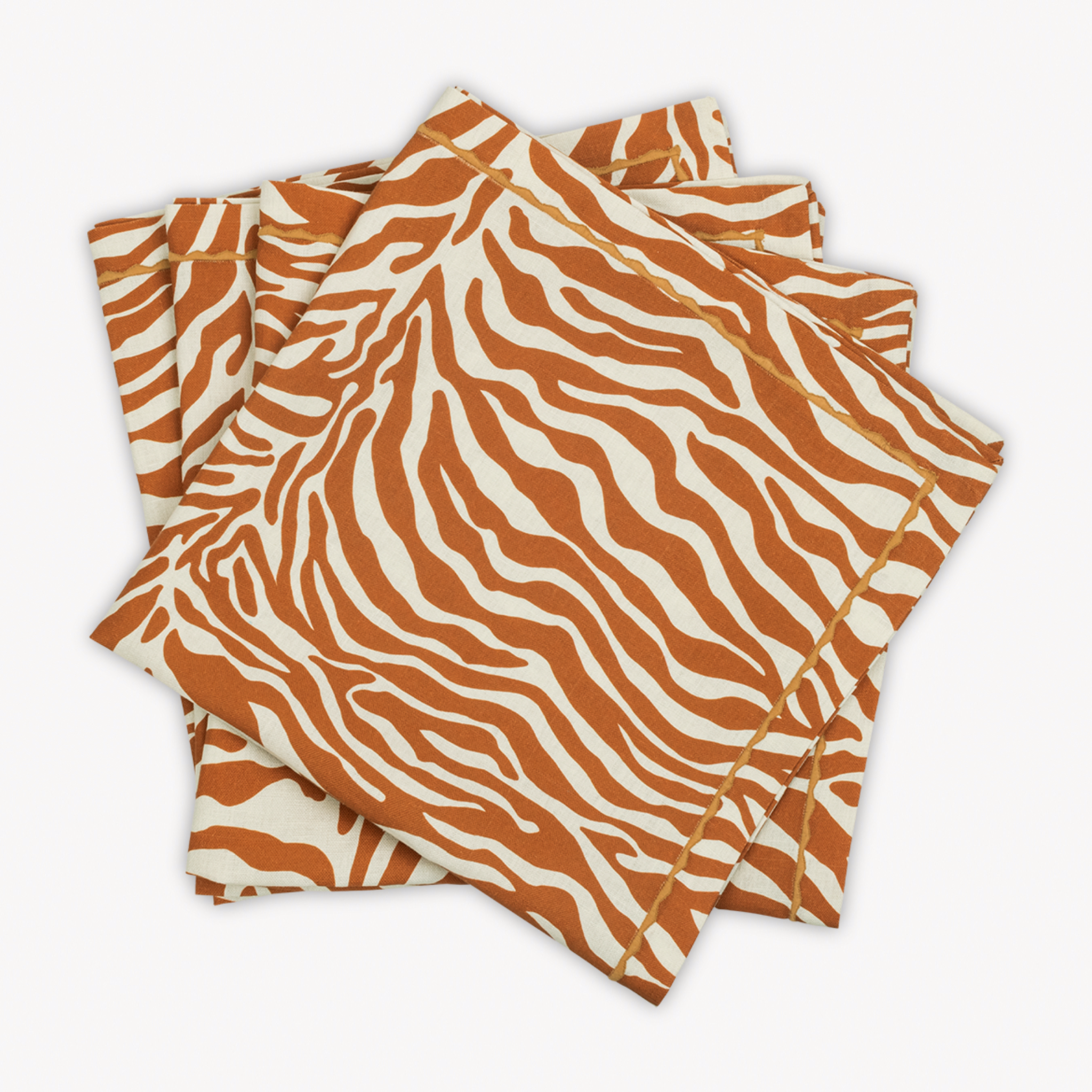 A striking combination of artistry and function, the Matouk Schumacher Regine Table Linens Collection transforms one of Schumacher’s most vibrant patterns into a decorative printed linen. With its stylized zebra motif, it’s an impactful look that’s perfectly suited for both everyday and special occasions.