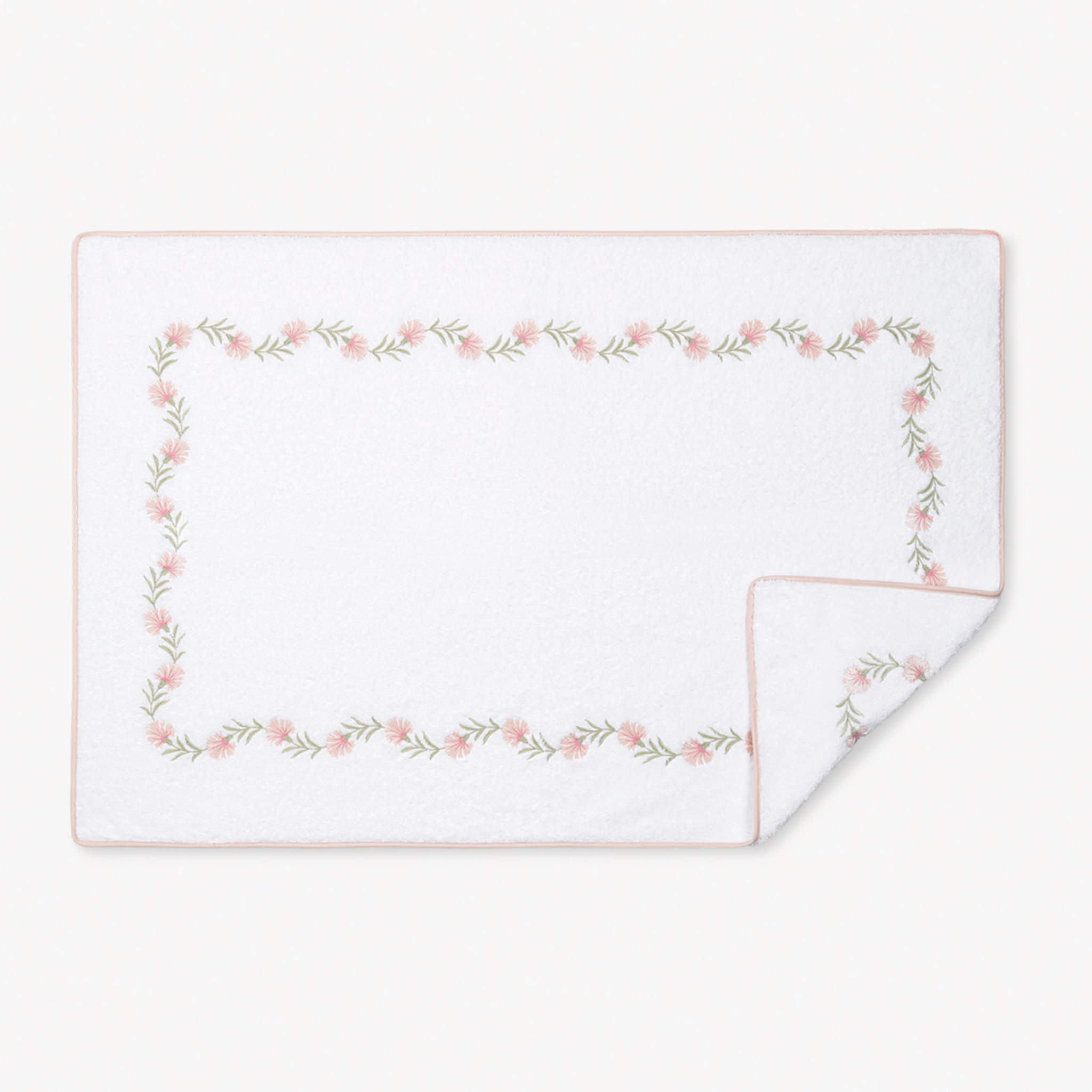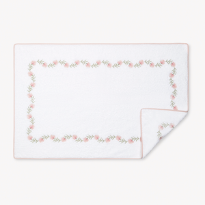 A vibrant floral against a simple backdrop, this coveted bedding design is now made for the bath. Daphne’s delicate embroidery adds a bold pop of color to Matouk's Cairo long-staple cotton terry, creating a lush towel that is a personal delight and brings charm to the bath.