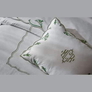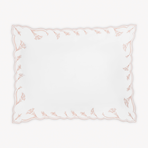 Matouk's Marcella bedding has delicate scalloped florals on luminous sateen that offer depth and softness to a classic design. Marcella’s exquisite embroidery combines timeless elegance with luxurious comfort, creating a graceful centerpiece for any bedroom.
