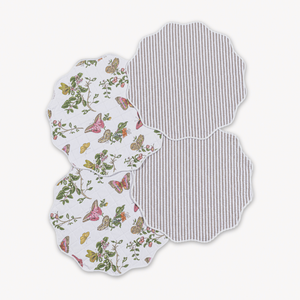 The Matouk Reversible Placemat Collection is an inspiring addition to the table, where each mat is thoughtfully designed with two layers of fabric and padding for added dimension. Showcasing a mix of prints and solids, these reversible pieces are finished with a tape trim and diamond quilting, blending structure with ease.