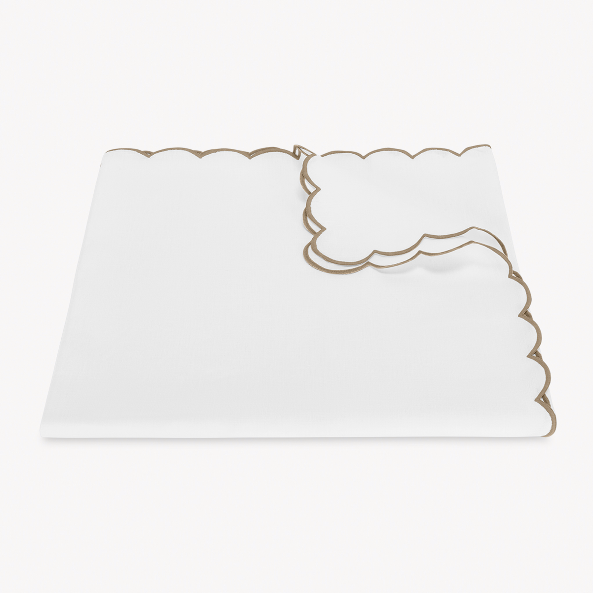 The Matouk Dakota Table Collection is subtle and sublime, crafted from Valentina linen and complemented by a scallop embroidered trim in versatile hues. This elegant assortment includes napkins, placemats, runners and tablecloths that fit any occasion and provide a delicate base on which to layer additional prints.