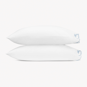 Matouk's Marcella bedding has delicate scalloped florals on luminous sateen that offer depth and softness to a classic design. Marcella’s exquisite embroidery combines timeless elegance with luxurious comfort, creating a graceful centerpiece for any bedroom.