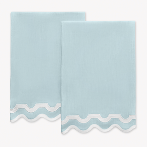 Echoing the refined charm of Palm Beach, Matouk's Mirasol guest towels feature a distinctive arch trim in Nocturne sateen—an elegant nod to boutique awnings. These timeless towels balance crisp linen with a touch of luminous sateen, bringing sophistication and coastal-inspired grace to any guest bathroom.