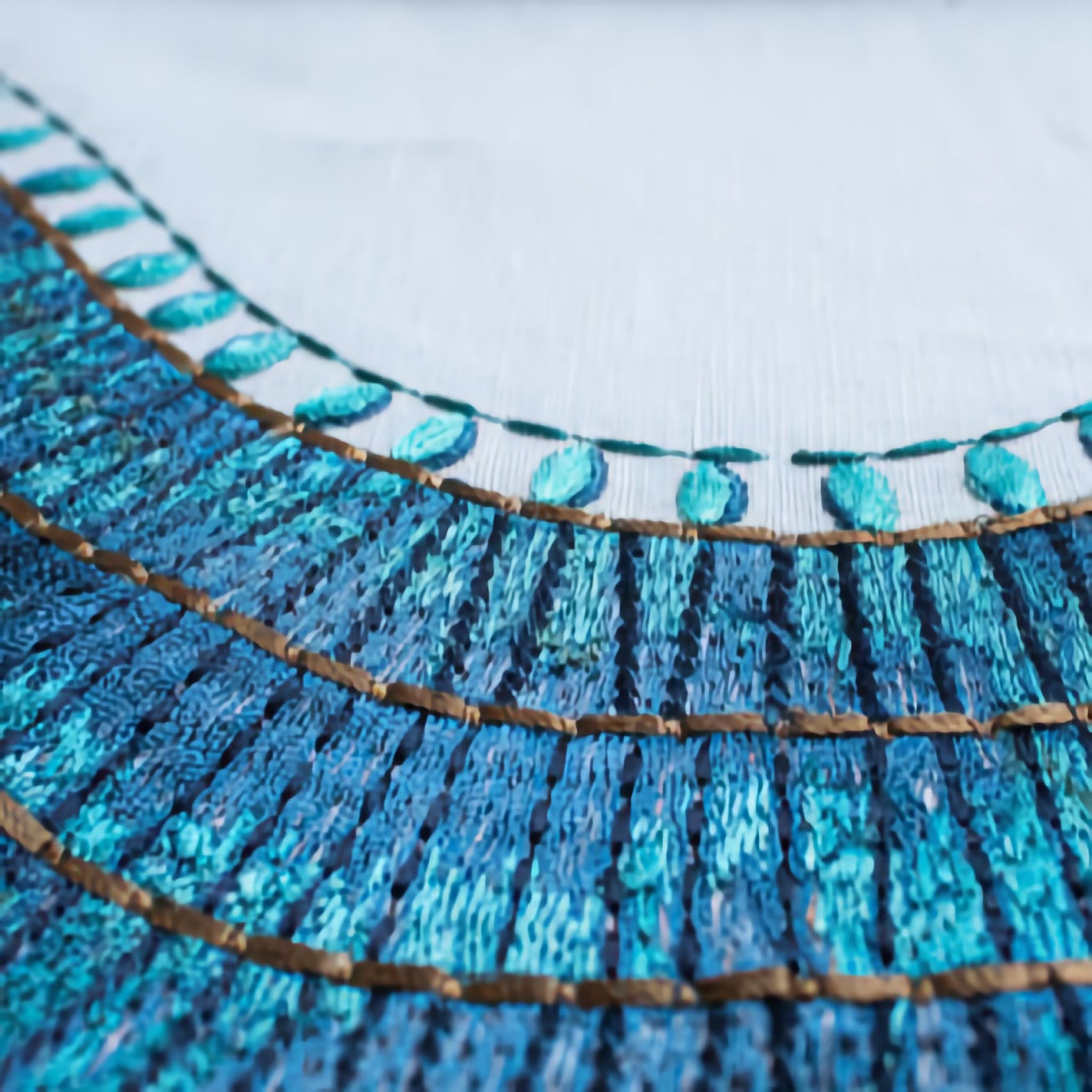 The design of an elaborately beaded collar from the Tomb of Wah is reinterpreted as a serpentine motif for The Met x Ann Gish Egyptian Collar Throw and Decorative Pillow. Bring home the art of the Metropolitan Museum of Art.