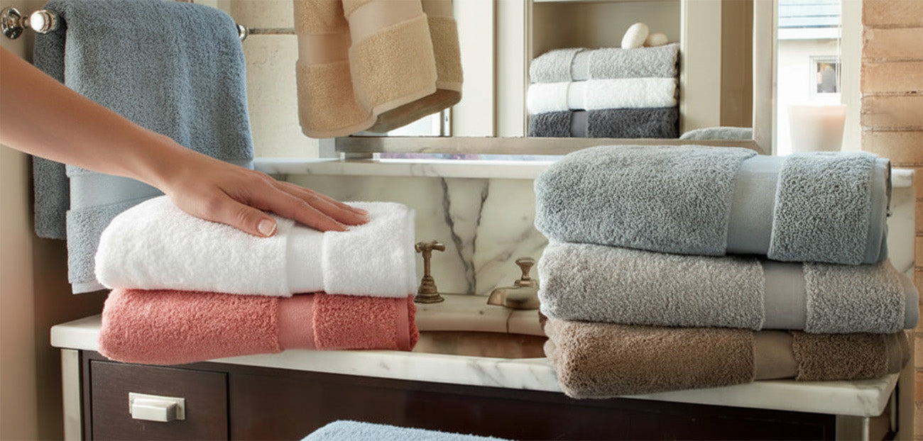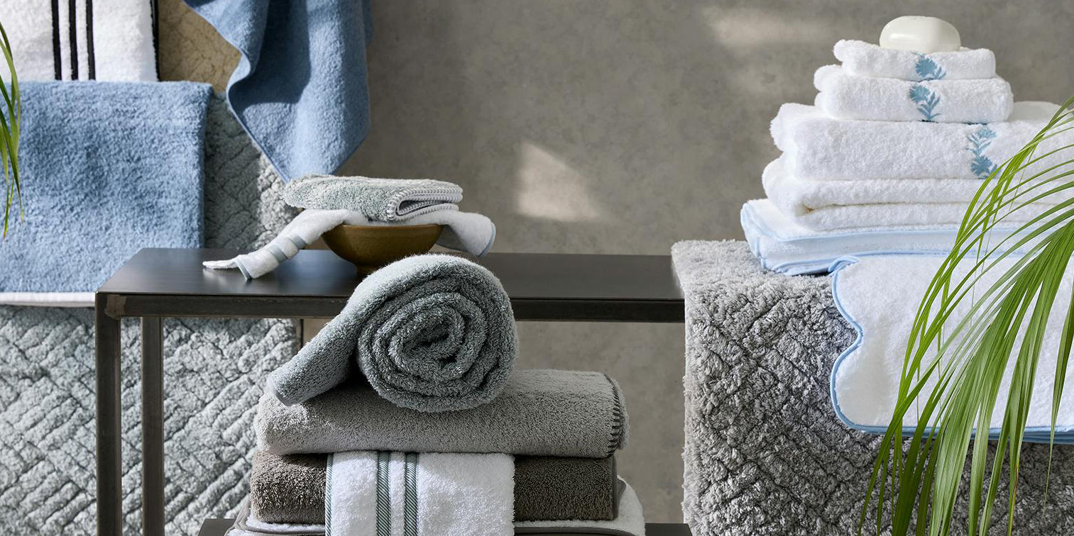 Set the tone of your bathroom linen suite with the daily indulgence of luxury bath towels. Woven from the softest and most absorbent cotton on Earth, our towel collections will change how you start your day—every day. Choose among dozens of options to find your perfect towel weight, color, size and style.
