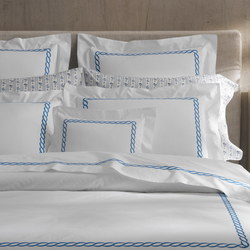 Matouk Cairo Bath Towels and Mats - White/Sea