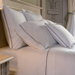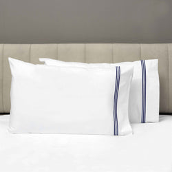 Signoria Platinum Percale Bedding - White/Midnight Blue
