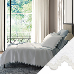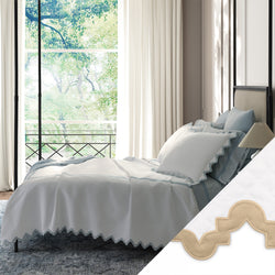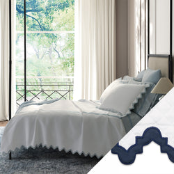 Matouk Classic Chain Scallop Matelassé Bedding - Steel Blue/Bone