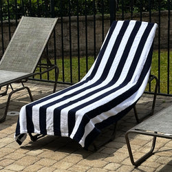 ARLU Home Luxury Terry Lounge Chair Towel Cover - White/Navy