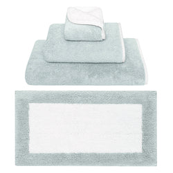 Graccioza Bicolore Bath Towels and Rugs - Sea Mist/White