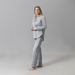 Matouk Nocturne Pajama Set - Dove and Steel Blue