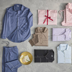 Matouk Nocturne Pajama Set - Blue and Lemon