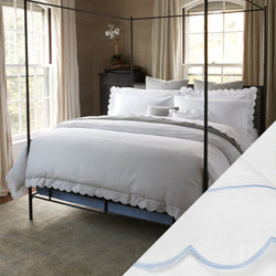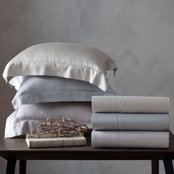 Matouk Bergamo Satin Stitch Bedding - Hazy Blue