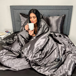 Mulberry Park Silks 22 Momme Duvet Covers - Gunmetal