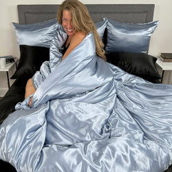 Mulberry Park Silks 22 Momme Duvet Covers - Steel Blue