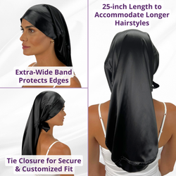 Mulberry Park Silks Long Hair Reversible Bonnet - Black