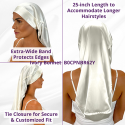 Mulberry Park Silks Long Hair Reversible Bonnet - Ivory