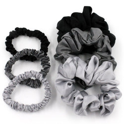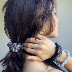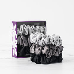 Mulberry Park Silks Pure Silk Scrunchies - Black, Silver, Grey