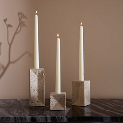 Sferra Travertino Stone Candle Holder - Beige
