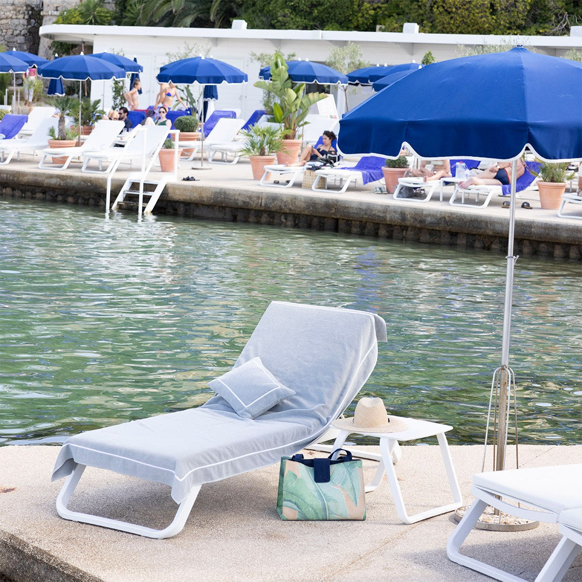 The Yves Delorme Croisière beach towel in Oranger (pictured here) -- as seen on the hit HBO series The White Lotus -- brings a touch of on-screen glamour to your pool side setup.