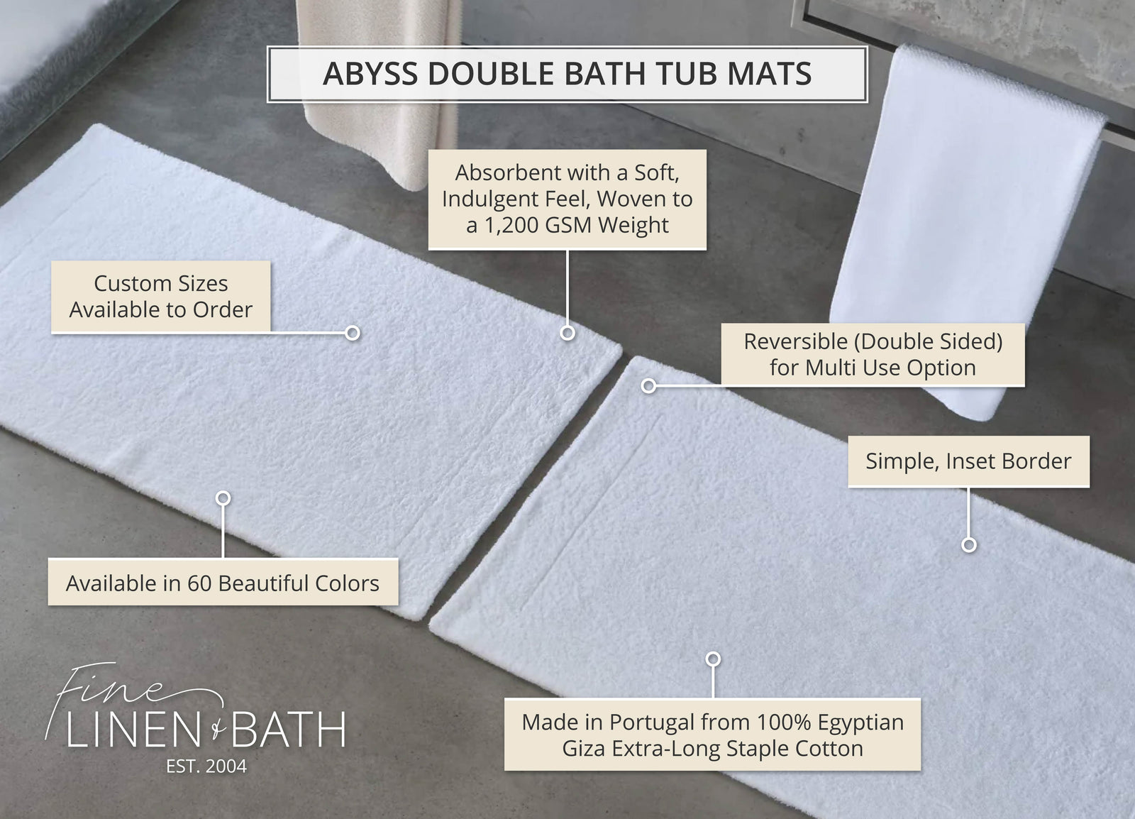 • Material: The Abyss Double Bath Mat is made with 100% extra-long-staple Egyptian Giza cotton.