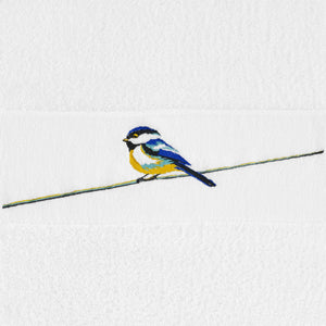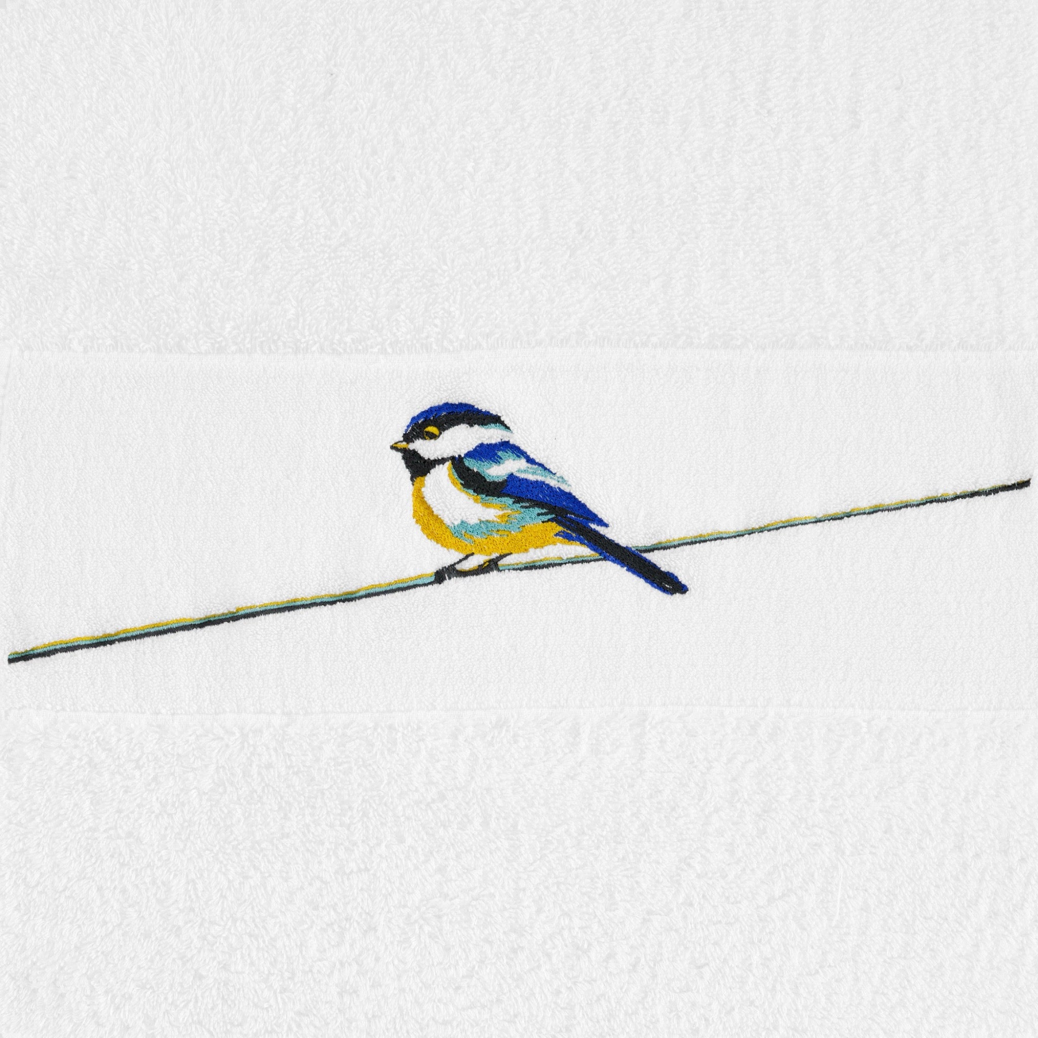 The charming embroidered design features a petite bird perched gracefully on a slender branch—its plumage rendered in vibrant shades of deep navy, brilliant blue, sunny yellow, and crisp white with exquisite detail. Rendered exclusively in this lively multicolor palette, the embroidery is both delicate and bold, a tender reminder that joy can be found in the smallest moments and simplest pleasures. This whimsical yet refined motif transforms your bathroom into a tranquil sanctuary touched by nature's grace.