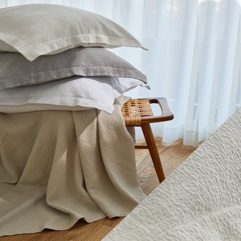 Add a layer of sophisticated texture to your bed with the BOVI Madeira Collection. These coverlets and shams are masterfully crafted from 100% certified European linen on the face, offering the classic, breathable, and slightly textured feel that only premium linen can provide. For an extra touch of cozy luxury, the pieces are backed with 100% cotton, ensuring a smooth and gentle feel against the skin while you rest.