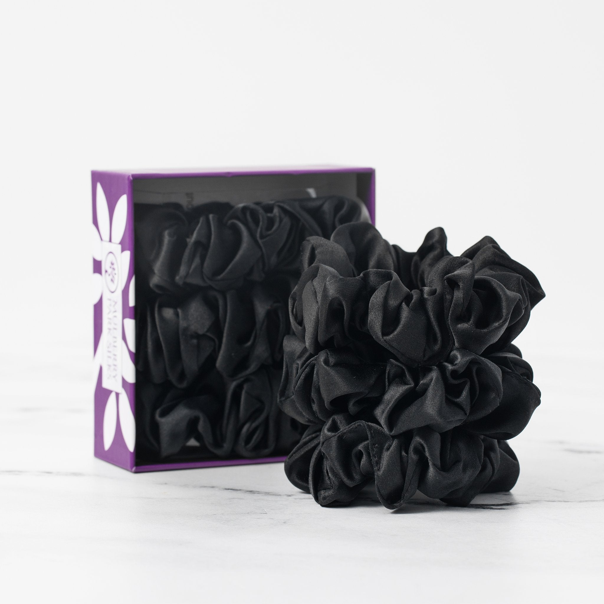 Mulberry Park Silks Pure Silk Scrunchies - Midnight Black
