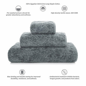 Graccioza's Egoist Bath Towels are for those seeking the utmost in a luxury towel.  Made in Portugal from 100% Extra Long Staple Egyptian Giza Cotton–the finest cotton on Earth–these towels are a weighty 800 GSM for a wonderfully soft feel and superior absorbency. Egoist towels are treated with a special formula to resist bacteria, fungus, and odors for long-lasting freshness. Along with being some of the world’s most luxurious towels, Graccioza Egoist is made to be durable and long lasting, with rounded corners, double-sewn piped edges, and a sewn-in loop for hanging. Graccioza Egoist towels are dense and voluminous for a truly indulgent experience in the bath. Available in a range of sizes and 30 stunning colors.