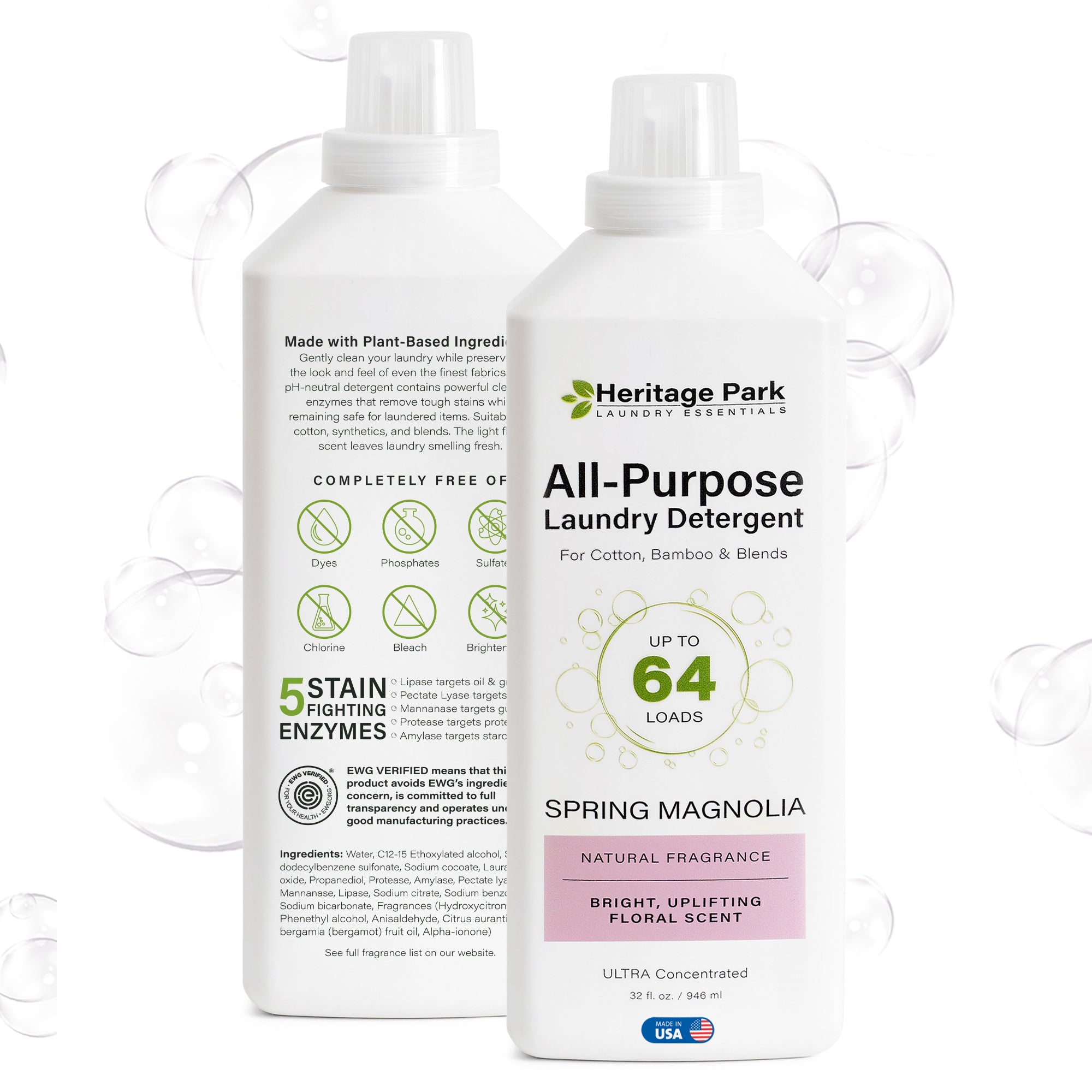 Heritage Park Laundry Essentials was founded with the mission of creating a detergent that was gentle on luxury fabrics but also highly effective in cleaning and removing stains. Heritage Park Luxury All-Purpose Laundry Detergent is the ultimate solution for washing your fine fabrics, including cotton, linen, bamboo, and blends. Choose from the fragrance-free formula that is hypoallergenic and dermatologist tested, or opt for lightly scented Lavender Mist, Shore Breeze, or Spring Magnolia varieties. The Heritage Park Laundry Essentials collection also includes Luxury Silk and Wool Detergent, an enzyme-free formula made for cleaning natural fibers like silk, wool, and cashmere; Naturally Bright Oxygen Powder, an eco-friendly laundry booster that lifts out dirt and stains; organic wool dryer balls; premium mesh laundry bags; and more. Heritage Park laundry detergents are produced in the USA in small batches for the highest level of quality control and purity. Heritage Park operates under rigorous stewardship guidelines that include sourcing the finest natural and naturally derived ingredients; manufacturing detergents in an EPA-registered facility; making products free from artificial fragrances, colors, preservatives, and harsh chemicals; never testing on animals; prioritizing the environment and eco-friendly production processes; and regularly having their products independently certified by third-party labs. Heritage Park is a family-run company headquartered in Connecticut.