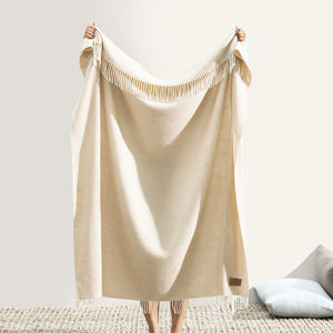 The Lands Downunder Juno Cashmere Throw is crafted from pure cashmere and lambswool. The luxurious basket weave throw offers a timeless design, sumptuous softness, and cozy warmth year-round, with the added elegance of a thicker decorative weave.