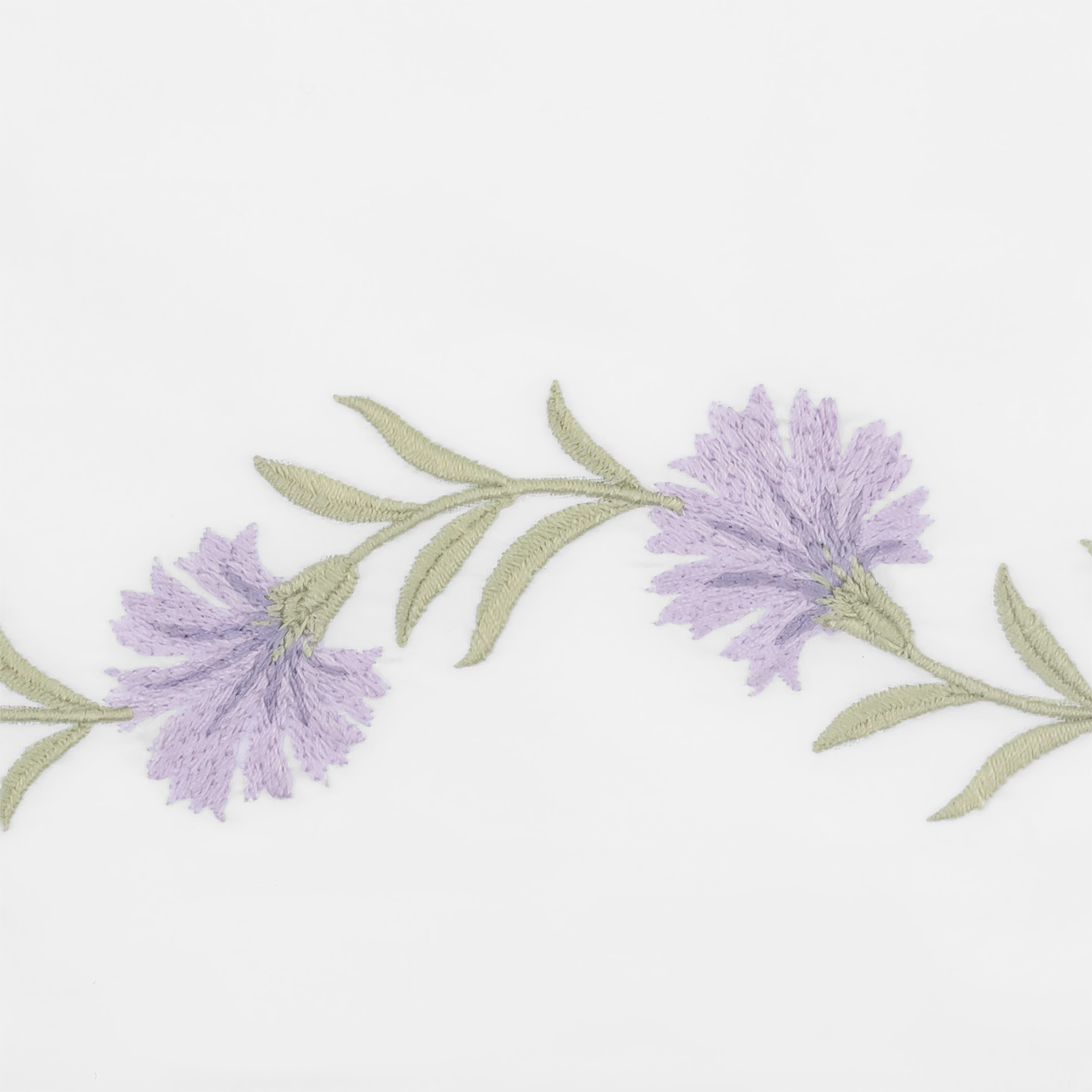 Matouk Daphne bedding features an embroidered floral vine that–depending on your choice of thread color–can be quietly classic or vibrant and bold.  Made on 520 thread-count white Ceylon percale, each piece is finished with a knife edge and delicate white cording.