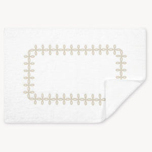 For Matouk's Gordian Knot design, pure white Cairo long-staple cotton terry is given a delightful accent: a precisely embroidered chain of knots drawn from classical Grecian art. The collection's palette of sophisticated embroidery colors lets you find just the right complement to your bathroom decor.