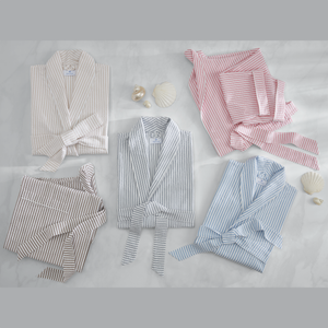 When the weather is warm, the best robe is lightweight, cool, and comfortable. Matouk's elegant seersucker Matteo robe is so much more, adding a hint of sophistication with a two-toned stripe evocative of classic menswear.