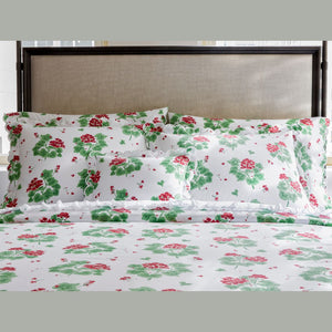 The Matouk Tillett Geranium Collection brings a vibrant, painterly spirit to the bedroom, reimagining a storied botanical design from the prestigious Tillett Textiles archive. This expressive print was famously featured in the Hyannis Port home of Jacqueline Kennedy Onassis, and now offers a timeless sense of joy through its bold, large-scale blooms.