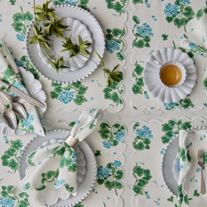 Geranium is a Matouk Tillett table design that applies the bold, hand-drawn floral from the Tillett archive onto linen. Its large-scale blooms and expressive brushwork create a striking, dimensional effect, while the natural texture of the linen lends an elegant feel to the table that’s perfect for year-round entertaining.