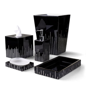 The Mike and Ally Cher Bath Accessories collection complements refined interiors. A bold yet refined statement, the Mike and Ally Cher Collection transforms the bath into a glamorous retreat. Each piece is hand-enameled and embellished with staggered linear crystal accents, creating a rhythmic play of light and texture. Offered in 48 curated colors with your choice of gold or silver trim, Cher infuses everyday rituals with sparkle and sophistication.